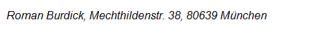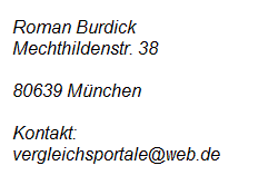 Der Nutzung von im Rahmen der Impreßumspflicht veröffentlichten Kontaktdaten durch Dritte zur &Uüuml;bersendung von nicht ausdrücklich angeforderter Werbung und Informationsmaterialien wird hiermit ausdrücklich widersprochen. Die Betreiber der Seiten behalten sich ausdrücklich rechtliche Schritte im Falle der unverlangten Zusendung von Werbeinformationen, etwa durch Spam-Mails, vor.